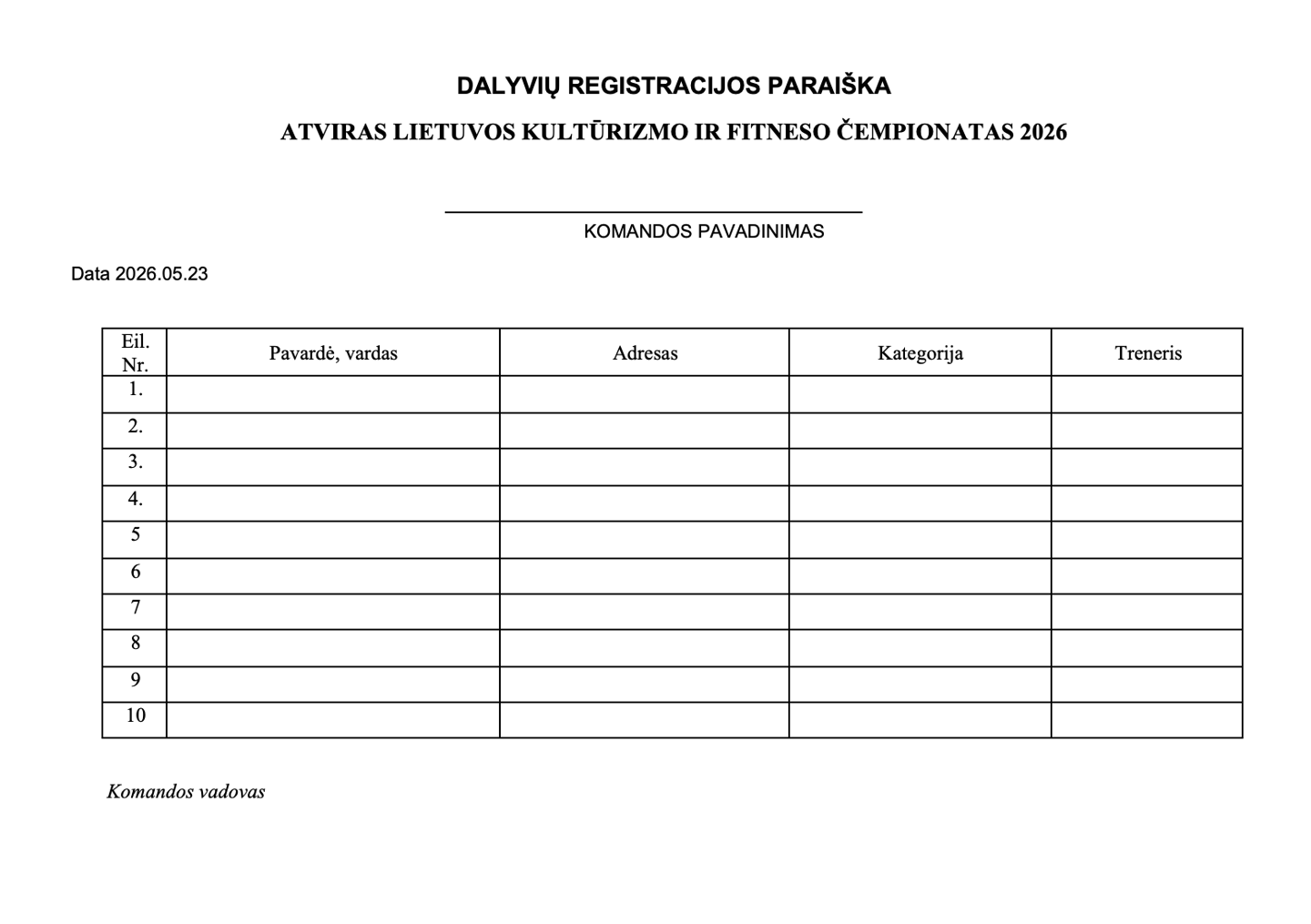 Čempionato varžybų organizatoriai: varžybas organizuoja Lietuvos kultūrizmo ir fitneso federacija